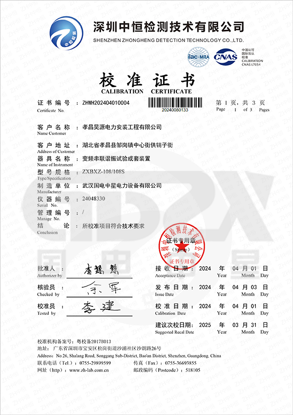ZXBXZ串聯(lián)諧振現(xiàn)場試驗