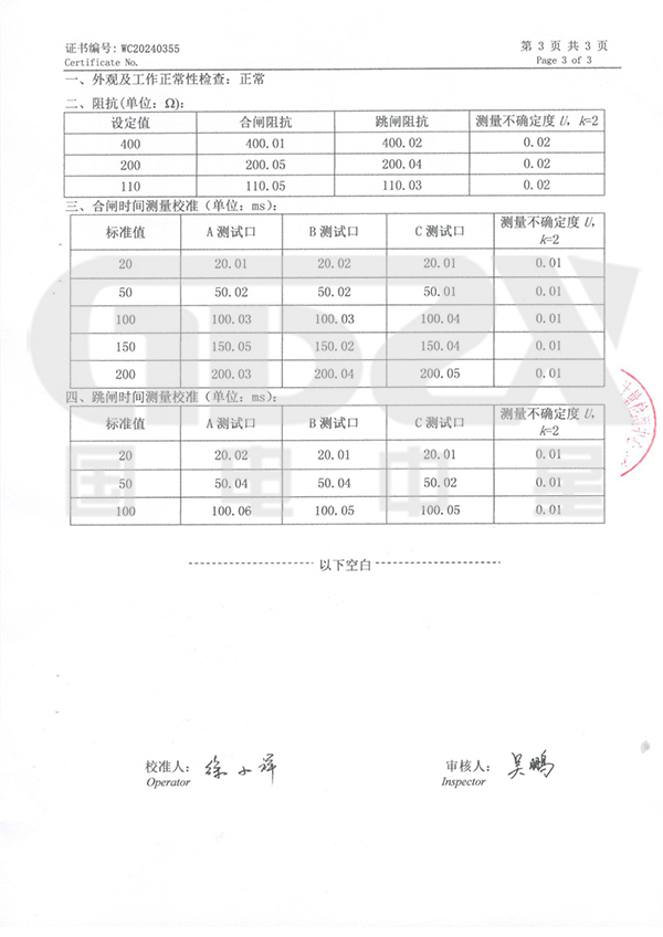 2. 跳合閘操作為電源電壓:DC220V、DC110V