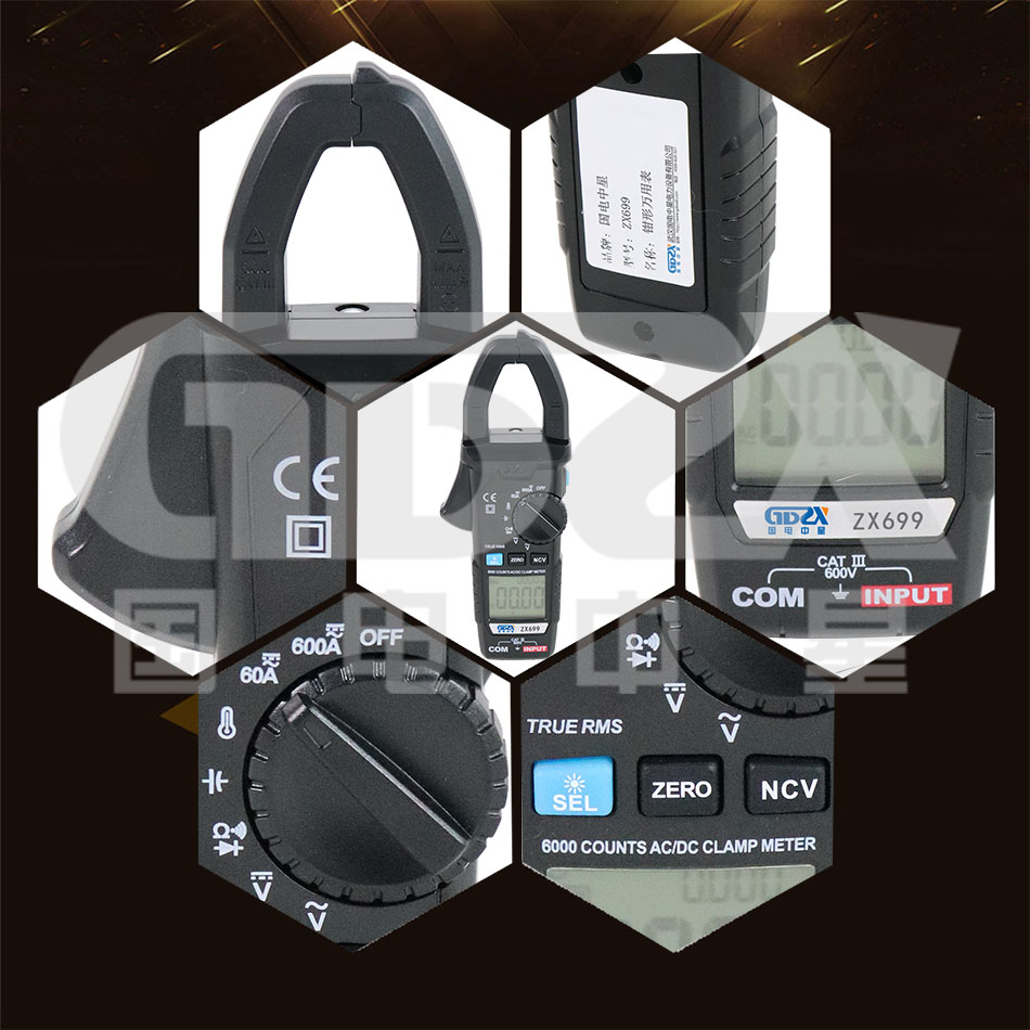 ZX699鉗形萬用表是一款6000計數(shù),交直流自動量程鉗形表,具備數(shù)據(jù)保持、環(huán)境溫度測量、自動關(guān)機、背光源、手電筒、全量程過載保護及電池欠壓指示等。儀表可用于測量交直流電流、交直流電壓、電阻、電容、二極管、線路通斷、溫度、NCV非接觸交流電壓探測。無論專業(yè)人士、工廠、學(xué)校、儀表愛好者或家庭使用,均為一臺理想的多功能產(chǎn)品。