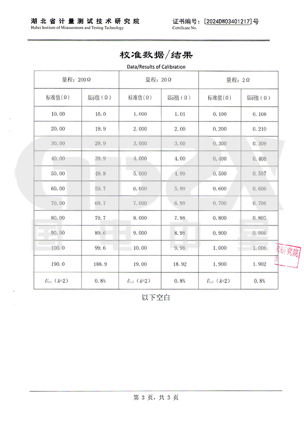 1)精度:0~0.2Ω≤±3%±2d;0.2Ω~200Ω≤±1.5%±1d;1~20V≤±3%±1d